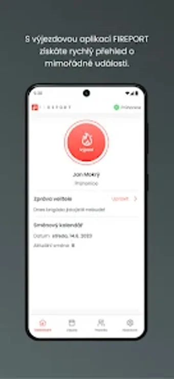 Key features of FIREPORT include simple pairing with the exit portal FIREPORTAL, multiple alarm tone options, online information about the currently serving shift, and a history of past events. The application also allows the unit commander to send messages to all members.